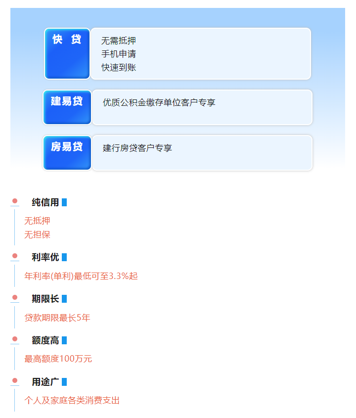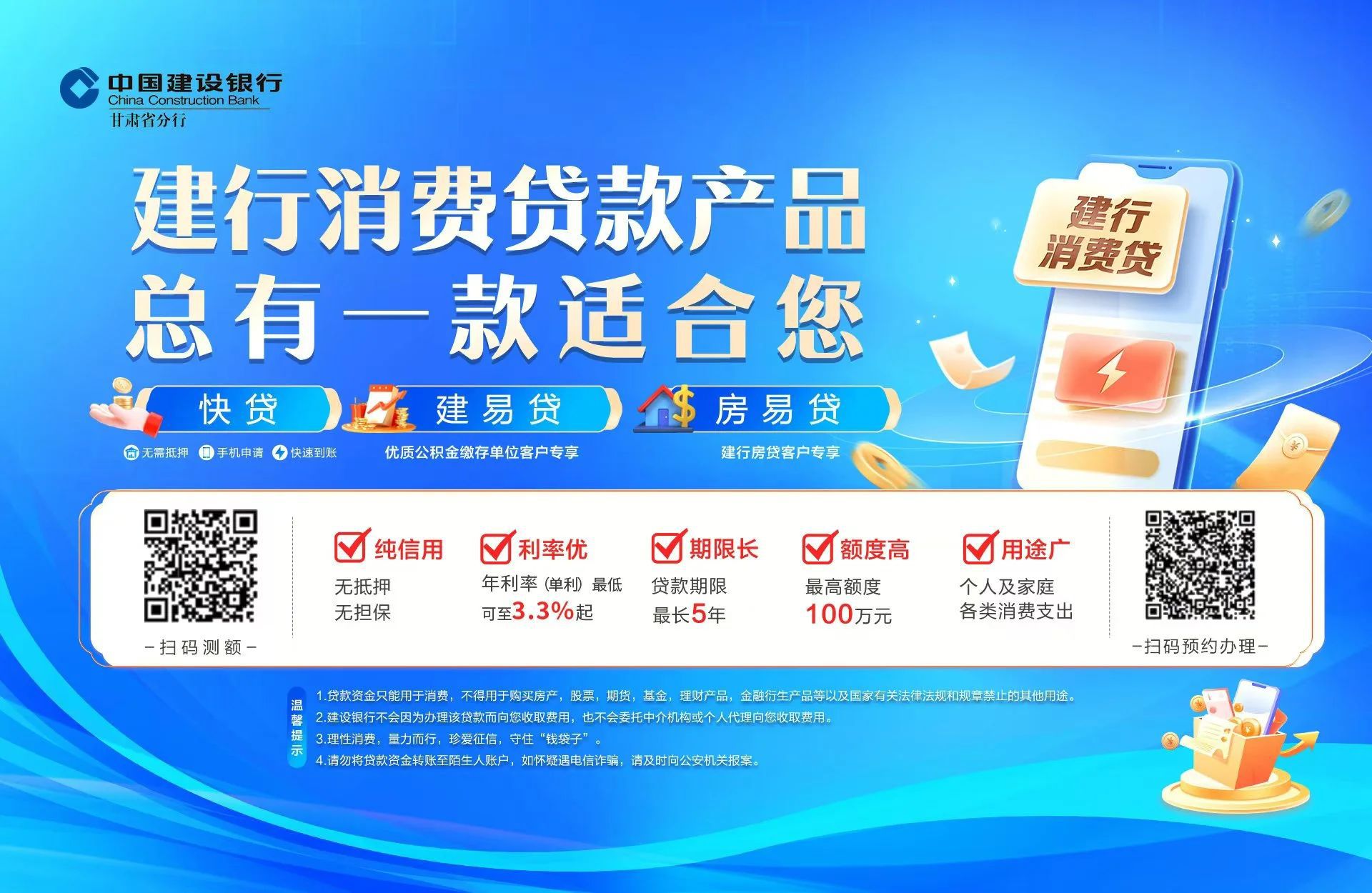 建行消费贷款产品,总有一款合适您!扫描上方二维码即可测额或添加您的专属客户经理,进行咨询办理!
