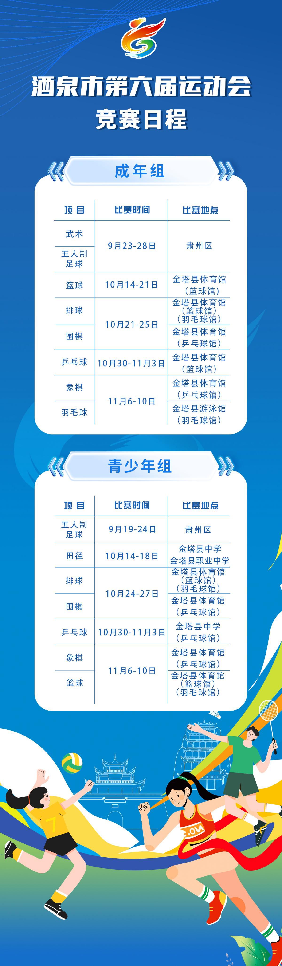 【聚焦市六运会】收藏!凯时尊龙市第六届运动会竞赛日程来了