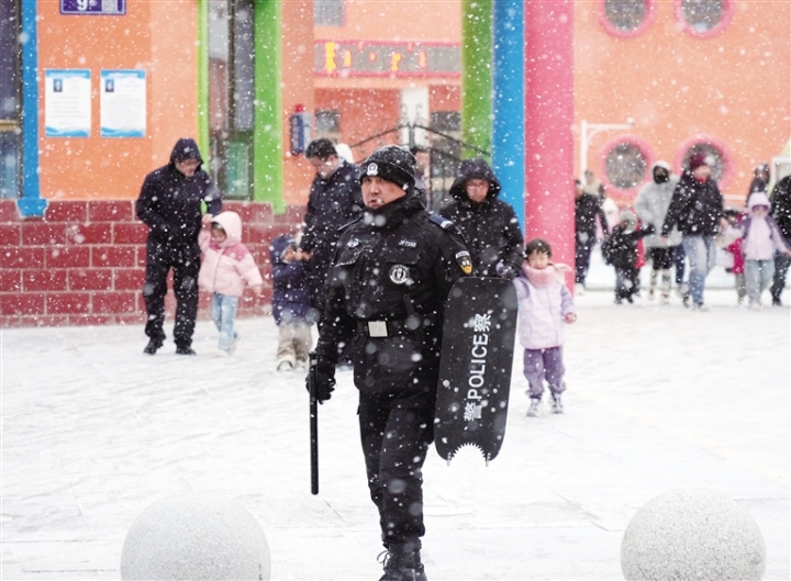 12月11日,阿克塞县突降大雪。阿克塞县公安民辅警坚守一线,全力做好雪天交通引导,筑牢雪天道路交通安全防线。“护学岗”民辅警提早到岗,引导校园周边交通次序,引导车辆有序通行,守护先生安全上下学。