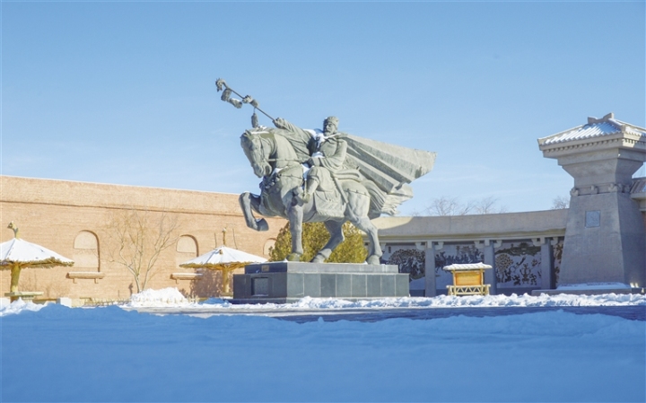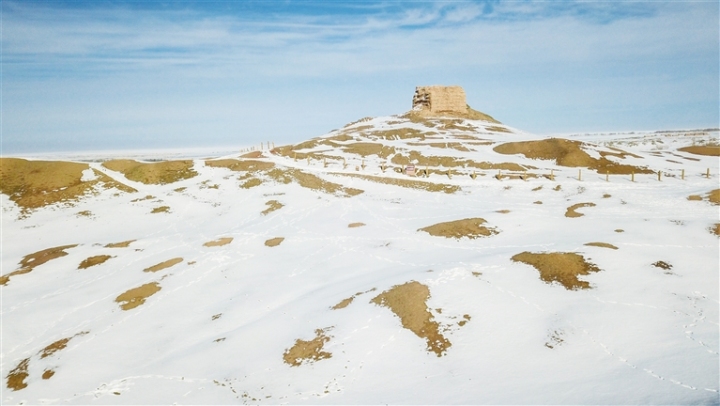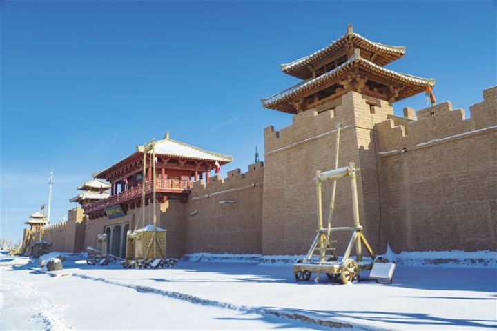 12月20日,雪后初霁,敦煌阳关景区在白雪映托下如诗如画。